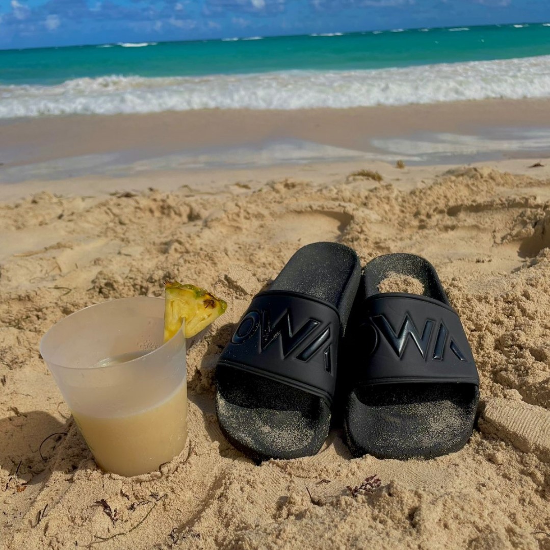 Resistente al agua, a la arena y al uso diario. El negro total le da ese carácter que no tiene cualquier chancla del mercado.